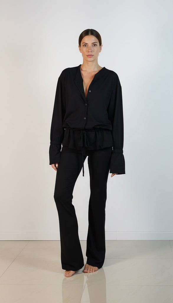Elegantný kúsok z kolekcie The Unseen Elegance . Tieto nohavice s lichotivou rozšírenou siluetou prinášajú ľahkú sofistikovanosť a všestrannosť do každého vzhľadu.